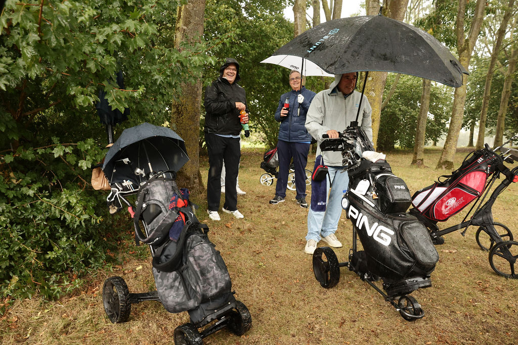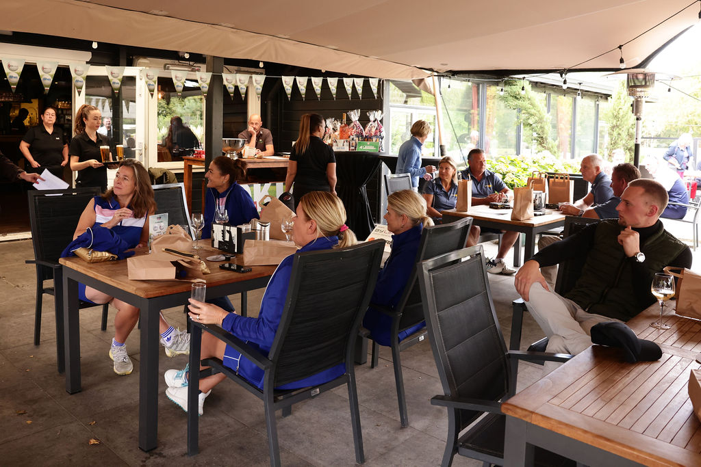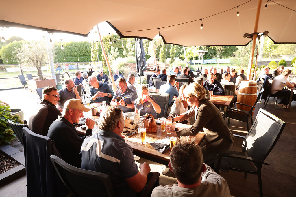 Tijdens het golfen kregen helaas meerdere deelnemers een nat pak door twee buien, maar gelukkig klaarde het daarna op en konden we de dag afsluiten met zonnestralen én een topsfeer. De gezelligheid op en naast de baan maakte het toernooi weer tot een groot succes.