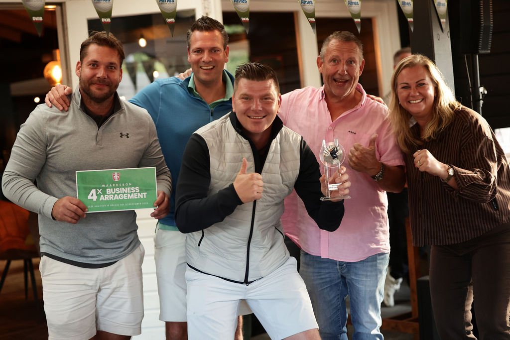 Uiteraard werden er prijzen uitgereikt. Verschillende golfers vielen in de prijzen, maar de hoofdprijs ging naar de flight van Verkeersschool Wierks: een geheel verzorgde avond bij FC Dordrecht.