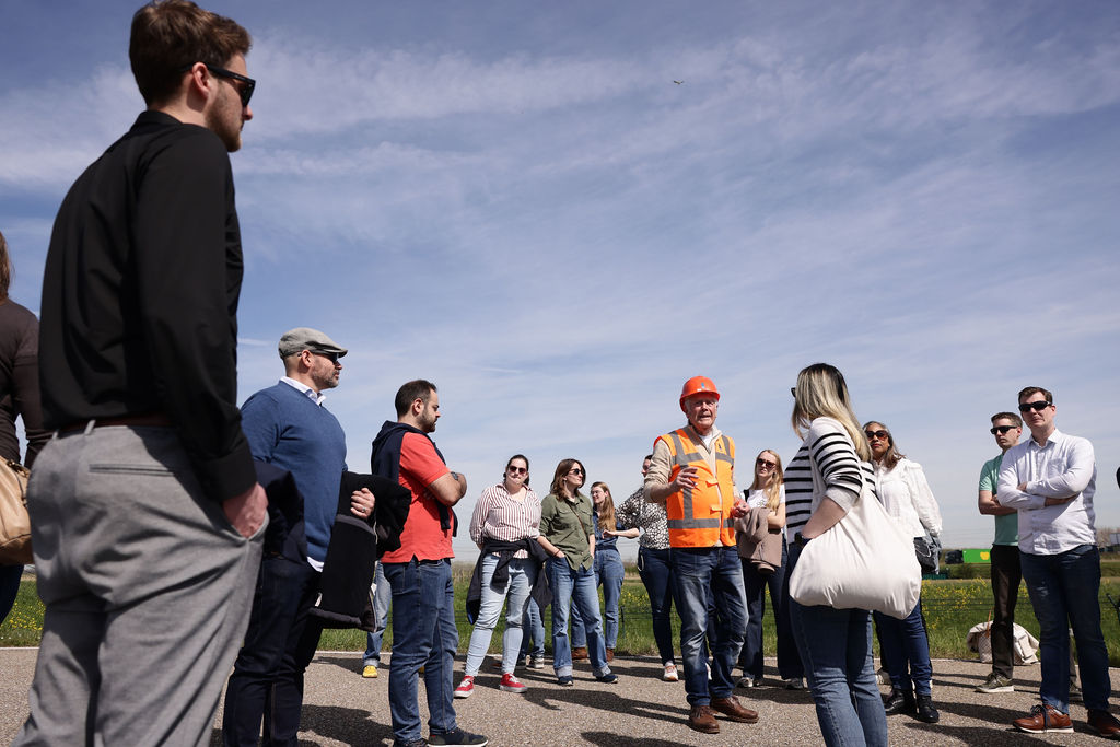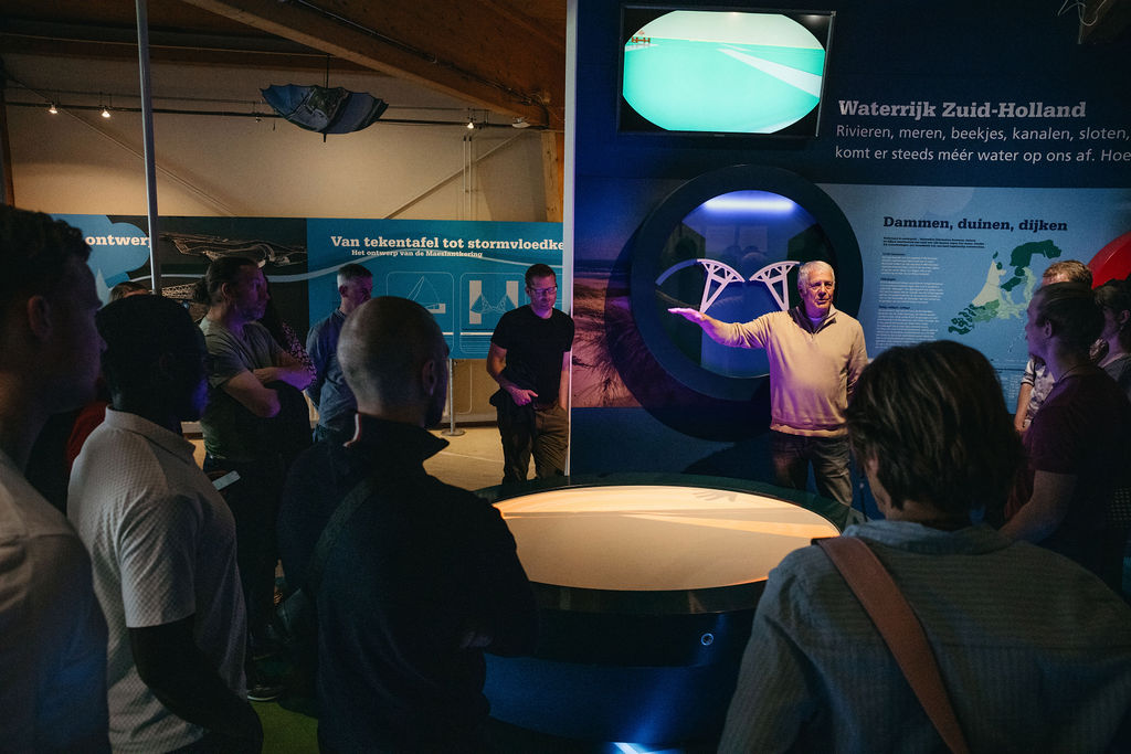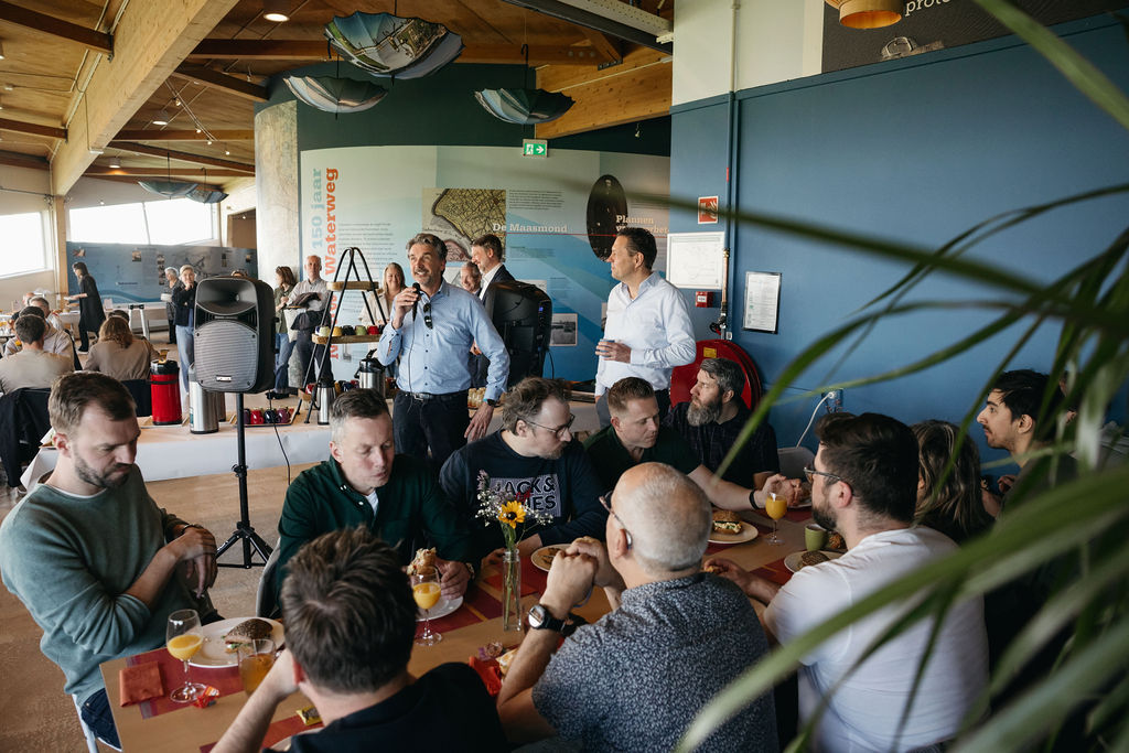 Het programma startte met een gezamenlijk lunchbuffet in het Keringhuis, waarna de groep werd verdeeld in kleineren groepen om de Maeslantkering op te gaan. Tijdens een inspirerende rondleiding kregen de deelnemers een uniek inkijkje in dit indrukwekkende staaltje waterbouwkunde. Aansluitend werd er in de zon nageborreld en verzorgde de directie van MBM Engineers een presentatie.